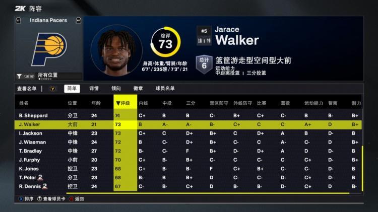 直播吧8月30日讯 今日NBA 2K26正式发布,步行者队球员能力值如下: